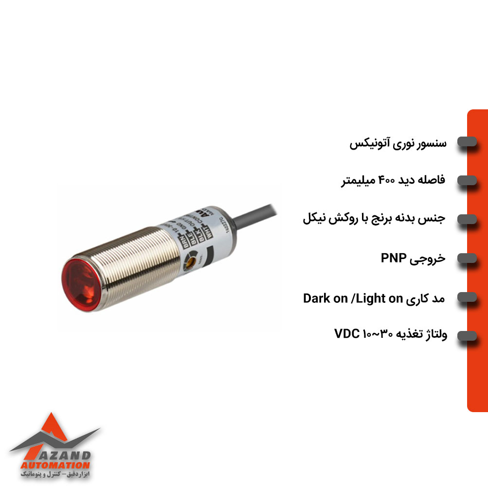سنسور نوری یک طرفه آتونیکس مدل BRQM400-DDTA-P با دمای مجاز نگهدای: 30- الی 70 درجه سانتی گراد می توانید از آزند اتوماسیون بهترین قیمت بخرید.