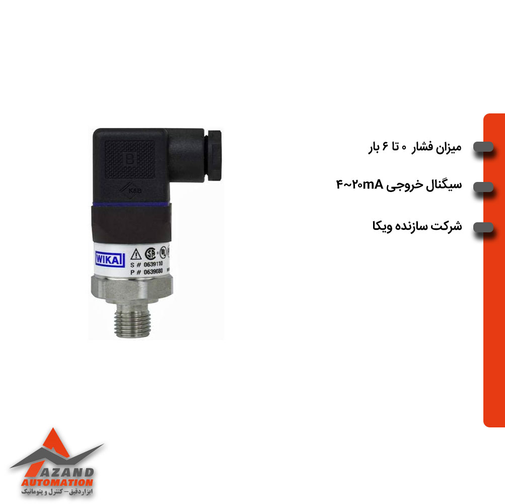 ترانسمیتر فشار ویکا A-10 رنج 0 تا 6 بار با کانکشن 1/4 قابل استفاده در صنایع مختلف میتوانید از آزند اتوماسیون نمایندگی سنسیس در لاله زار با قیمت ویژه بخرید .