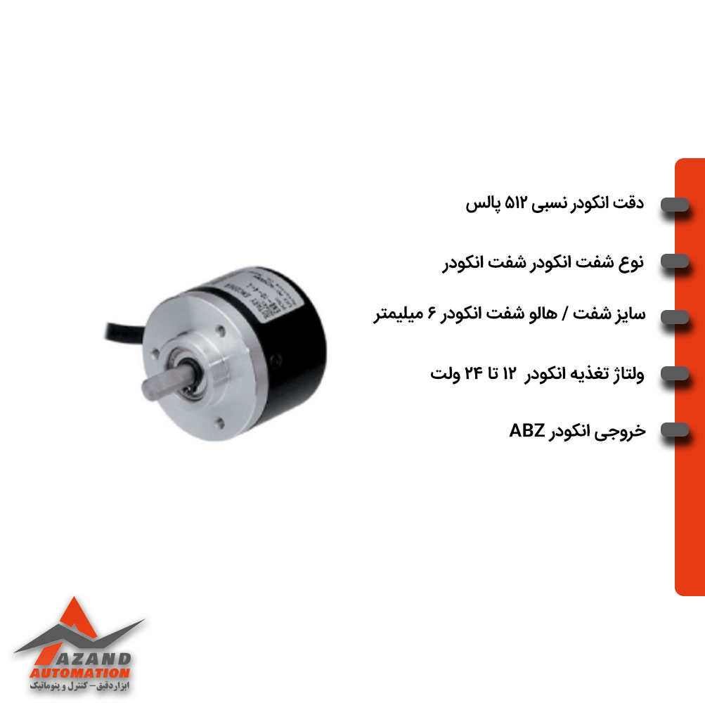 انکودر آتونیکس مدل E40S6-512-3-T-24 با دقت 512 پالس و قطر بدنه 40 و شفت 6 میلی متر انکودر آتونیکس را میتوانید از آزند اتوماسیون بخرید.