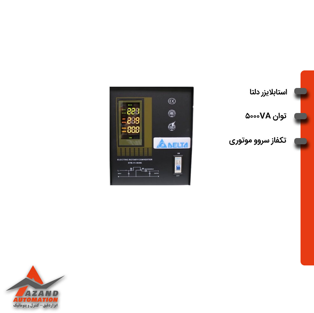 استابلایزر تک فاز دلتا مدل STB-11-5KVA جهت ﻣﺤﺎﻓﻈﺖ و ﺗﻘﻮﻳﺖ ﻳﺎ ﺗﻀﻌﻴﻒ ﺑﺮق تک ﻓﺎز از آزند اتوماسیون با بهترین قیمت خریداری کنید.